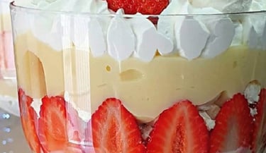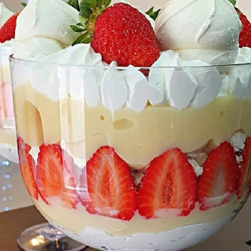 Uma fôrma recheada dessa paixão nacional, onde mesclamos um creme deliciosíssimo, com o clássico biscoito de champanhe umedecido e misturado com muuuuuuuuitos morangos frescos suculentíssimos.