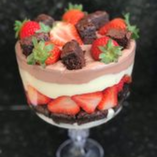 Uma linda taça com camadas de dar água na boca, compostas por um delicioso creme quatro leites, nosso inconfundível e único brownie fudge feito com chocolate nobre meio amargo, morangos suculentos e frescos e finalizado com uma deliciosa mousse da singular Nutella.