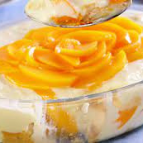 Uma fôrma recheada dessa paixão nacional, onde mesclamos um creme deliciosíssimo, com o clássico biscoito de champanhe umedecido e misturado com muito pêssego em calda bem suculento.